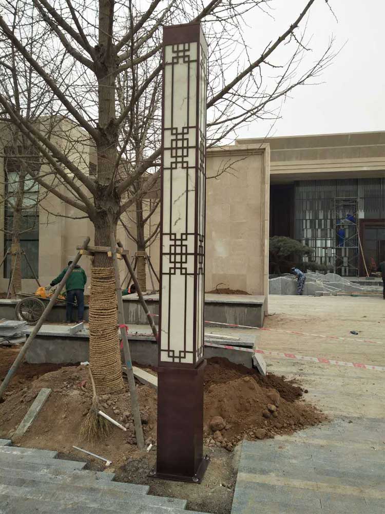 寶雞花旗集團庭院方燈,該項目主要采用的是我公司自己設計生產的庭院燈、草坪燈。顏色外觀采用激光切割板材與亞克力板組成,造型簡單大方,顏色深淺搭配柔和,夜間亮燈,散發(fā)出暖色燈光。
