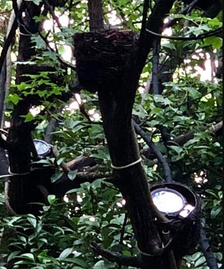今年三月,公園在進行點亮提升工程初期,增設了很多燈組,到了晚上,不同顏色的燈光交匯在一起,增加了南湖畔的夜景效果,看著漂亮得很。但是白天卻影響公園里的整體美觀,就設計采取了這種以假亂真的辦法,用“鳥巢”把一盞盞景觀燈給包裹起來,與周圍自然環(huán)境融為一體,讓住在樓房里的人們來到湖畔休閑納涼時,感受到一種貼近大自然的城市慢生活。沿著南湖一周,在綠化樹上搭建的這種“鳥巢”燈罩總共1萬多
